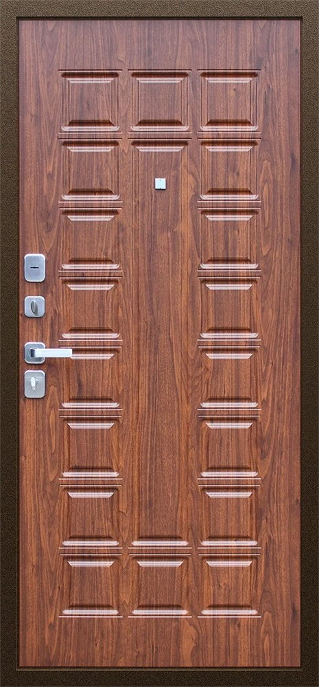 Надежная входная Дверь Спартак Орех темный премиум класса по цене 33 947 руб. Большая толщина стали защитит от проникновения в ваш дом, квартиру или коттедж. Используется очень качественная фурнитура: замки, цилиндры, ручки, защелки. Покрытие и отделка двери изготовлено под внимательным контролем производителя. Дверь имеет долгий срок службы и гарантию.